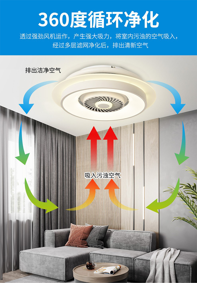 【功能】高亮LED照明、三色變光、遙控升降、雙漩渦出風口