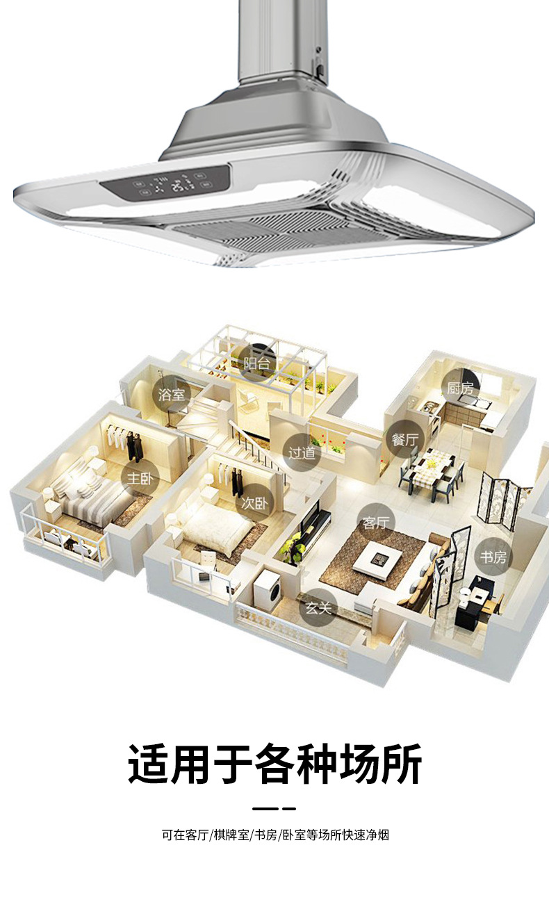 棋牌室、會客廳、包間、KTV、會所、候車廳等除煙除塵凈化燈,集吸煙、照明、裝飾三位一體;學校教師、幼兒園、庫房、車間、實驗室、無菌室、手術室、更衣室、灌裝間、包裝間賓館、酒店、客房等需要殺菌消毒的場所均適用