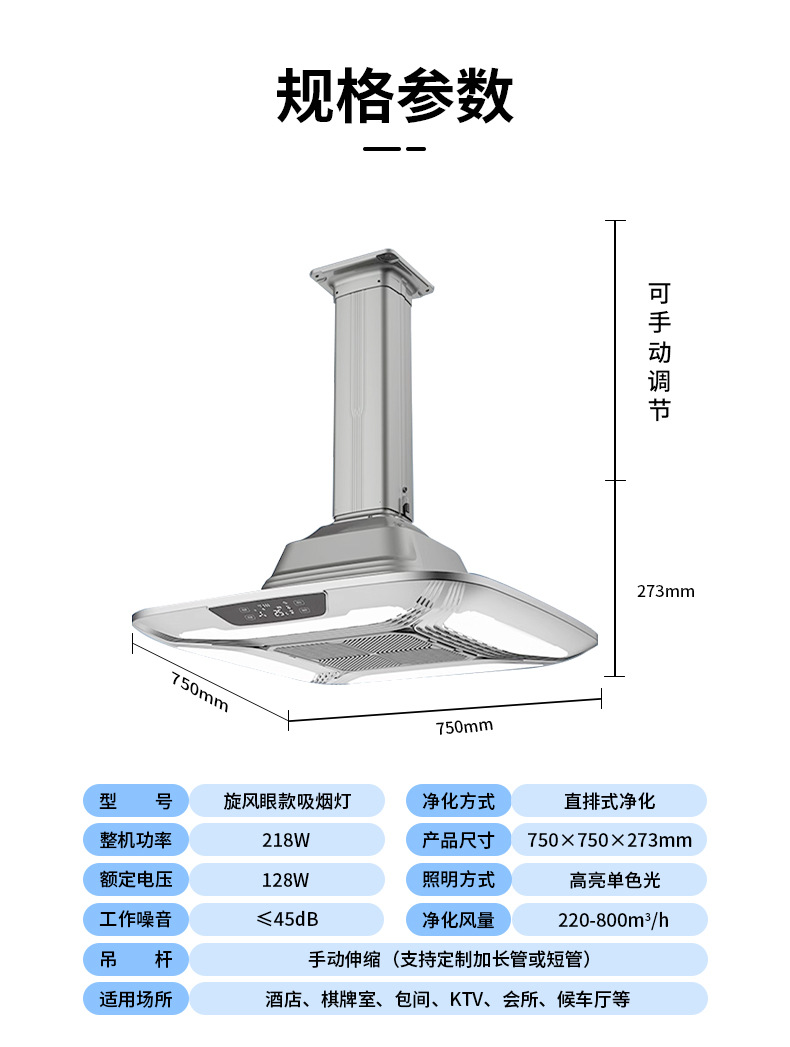 - 直排吸煙凈化燈強勁環(huán)吸四邊燈光D8-W