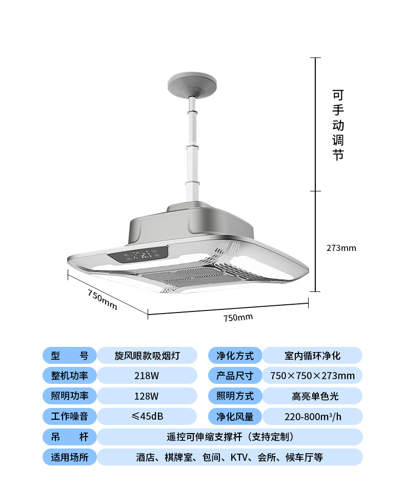 - 大燈遙控升降內循環(huán)吸煙凈化燈588C